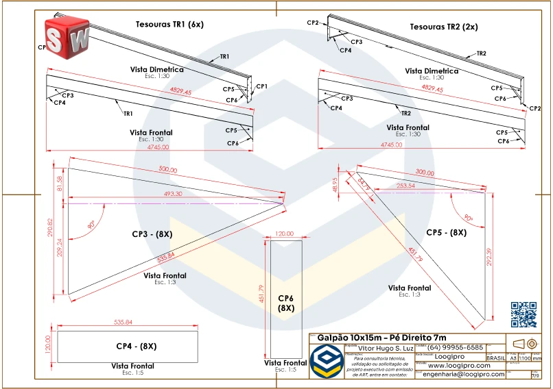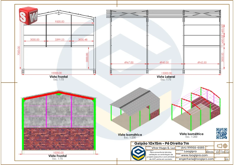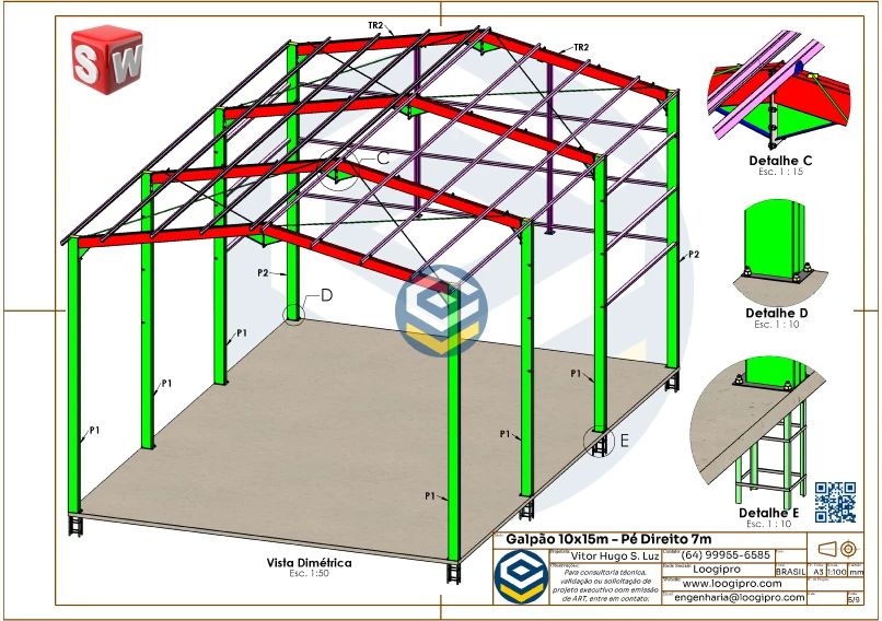 ⚠️ Observação: Este produto não inclui cálculo estrutural, fundações ou validação técnica. O uso é de responsabilidade do engenheiro aplicador, conforme as normas técnicas vigentes (como NBR 8800 e NBR 14762).