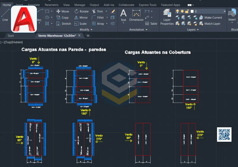 Galpão Metálico 12x30m Cype3D – Modelo Referência Editável