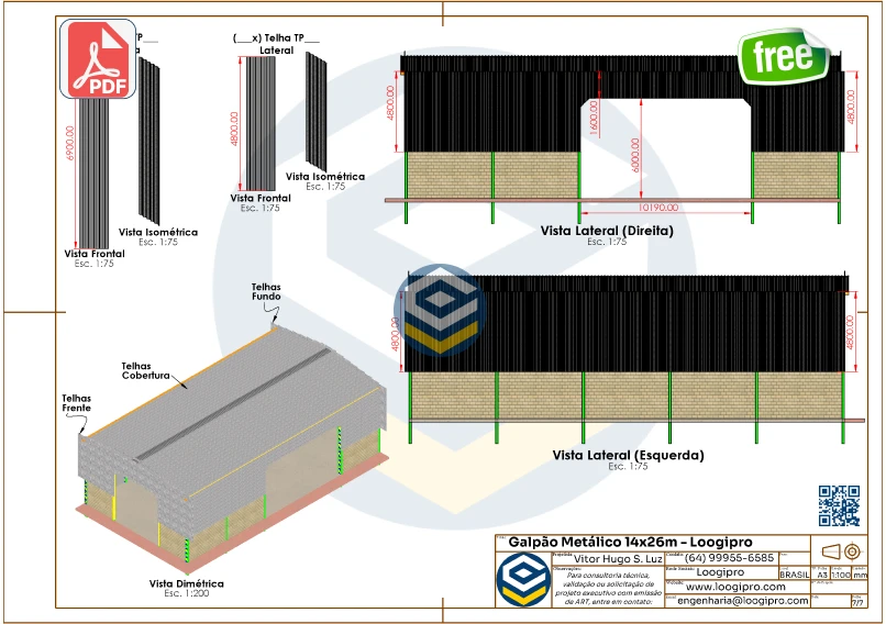 ⚠️ Observação: Este projeto de referência em PDF não inclui cálculo estrutural, fundações ou validação técnica (conforme NBR 8800 e NBR 14762). O uso é de responsabilidade do engenheiro responsável, seguindo as normas técnicas vigentes.