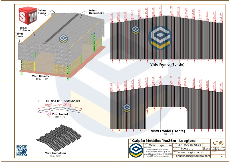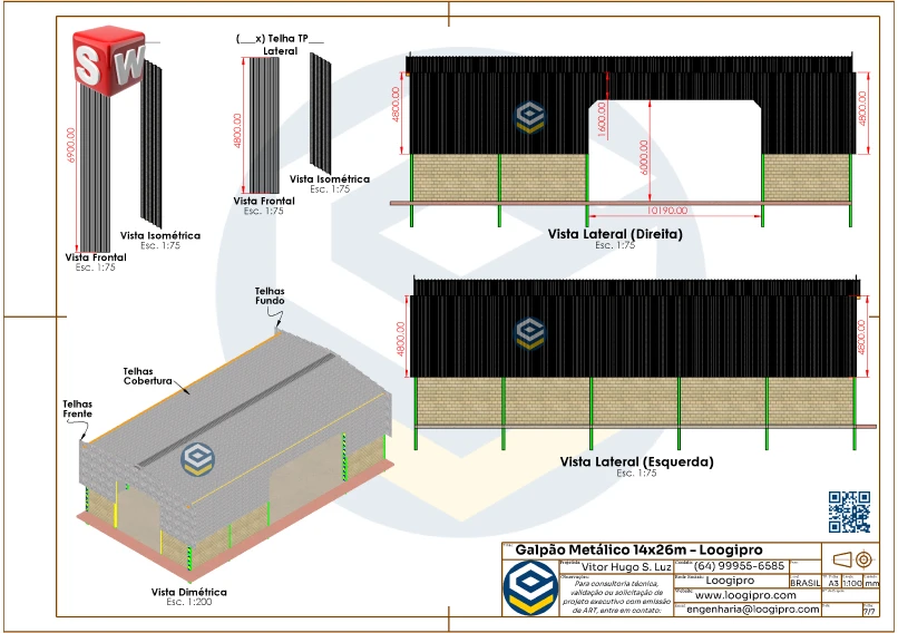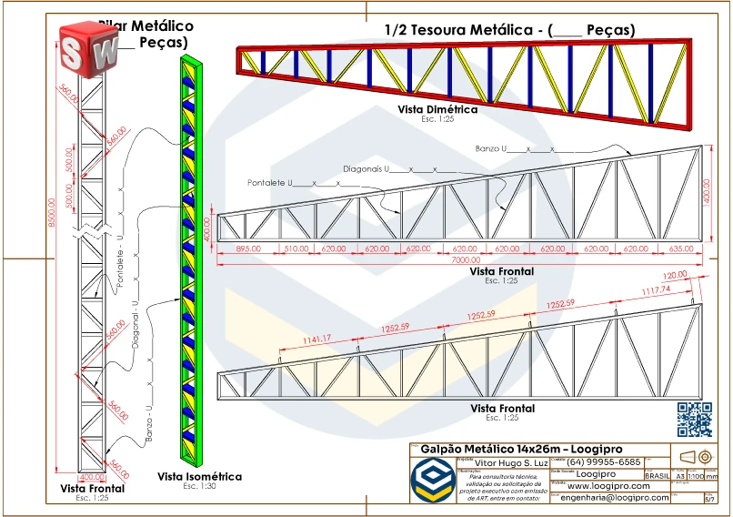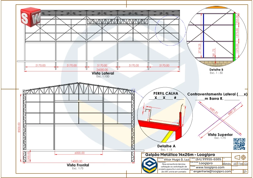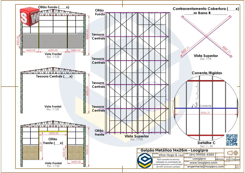 ⚠️ Observação: Este produto não inclui cálculo estrutural, fundações ou validação técnica. O uso é de responsabilidade do engenheiro aplicador, conforme as normas técnicas vigentes (como NBR 8800 e NBR 14762).