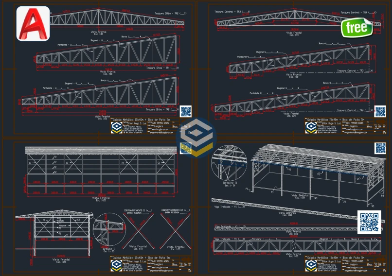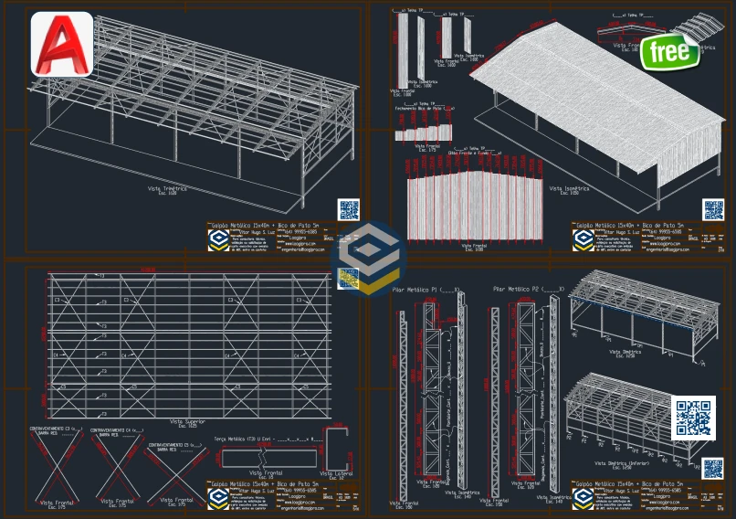Os projetos DWG gratuitos foram desenvolvidos para otimizar o dia a dia dos profissionais da construção civil e estruturas metálicas.