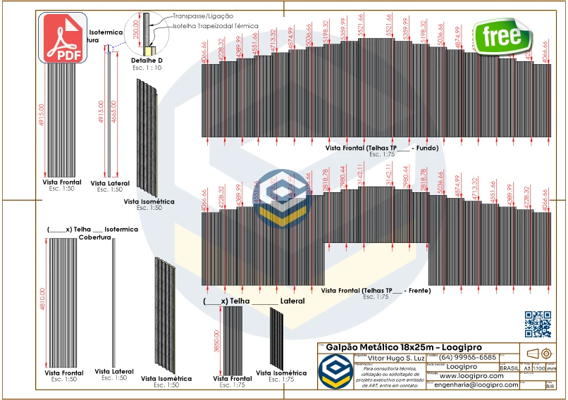 ⚠️ Observação: Este projeto de referência em PDF não inclui cálculo estrutural, fundações ou validação técnica (conforme NBR 8800 e NBR 14762). O uso é de responsabilidade do engenheiro responsável, seguindo as normas técnicas vigentes.