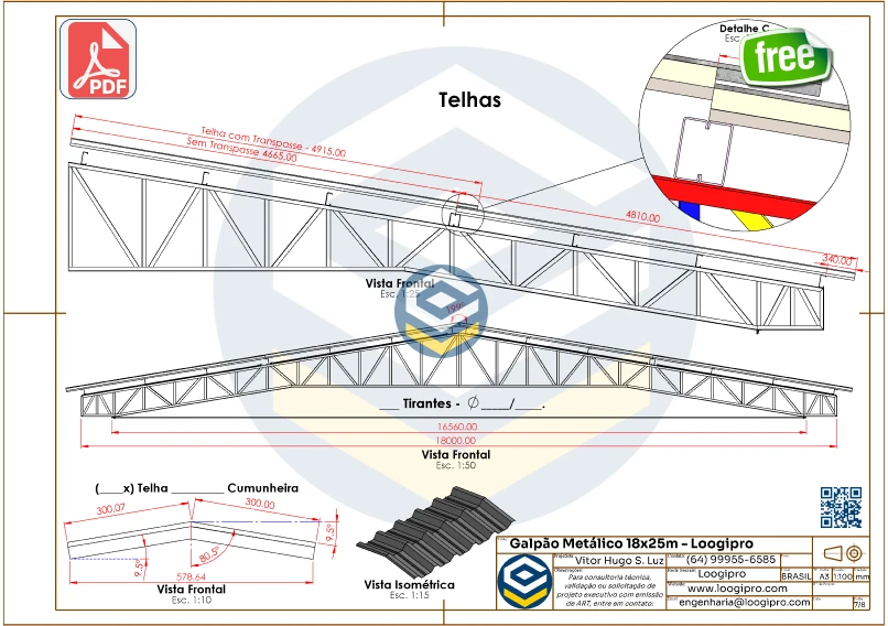 Os projetos em PDF gratuitos foram desenvolvidos para agilizar a vida dos profissionais da construção civil e das estruturas metálicas. Eles oferecem uma referência visual rápida, com dimensões gerais, permitindo avaliar o modelo de forma prática antes de optar por um projeto completo e editável.