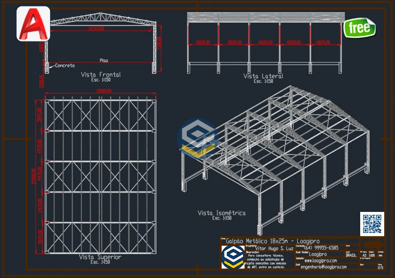 O Galpão Metálico 18x25m – Tesoura Reduzida – Projeto em DWG – Estrutura Metálica foi desenvolvido para engenheiros, projetistas e estudantes que buscam referência técnica, organização e eficiência em projetos de estruturas metálicas modernas.