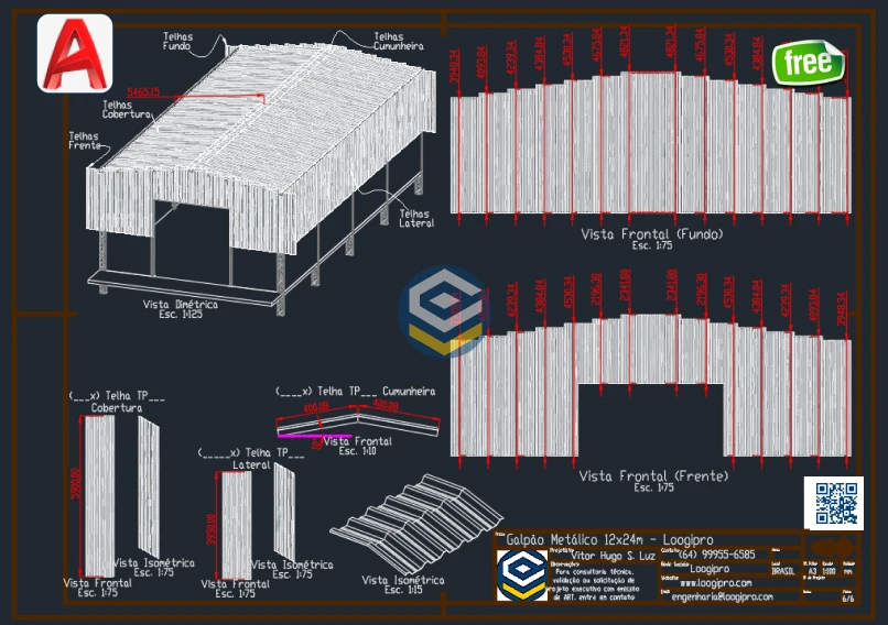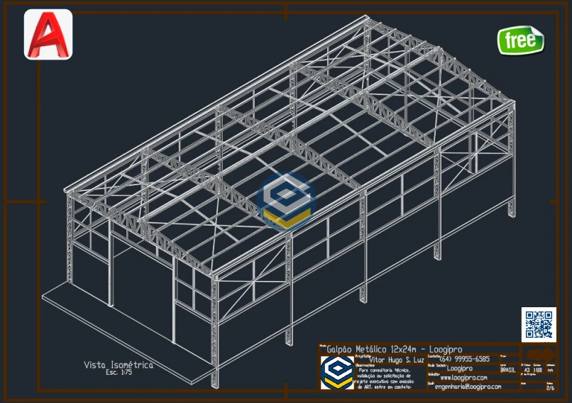 O Galpão Metálico Acoplado 12x24m – Projeto em DWG – Estrutura Metálica foi desenvolvido para engenheiros, projetistas e estudantes que buscam referência técnica, organização e eficiência em projetos de estruturas metálicas acopladas.