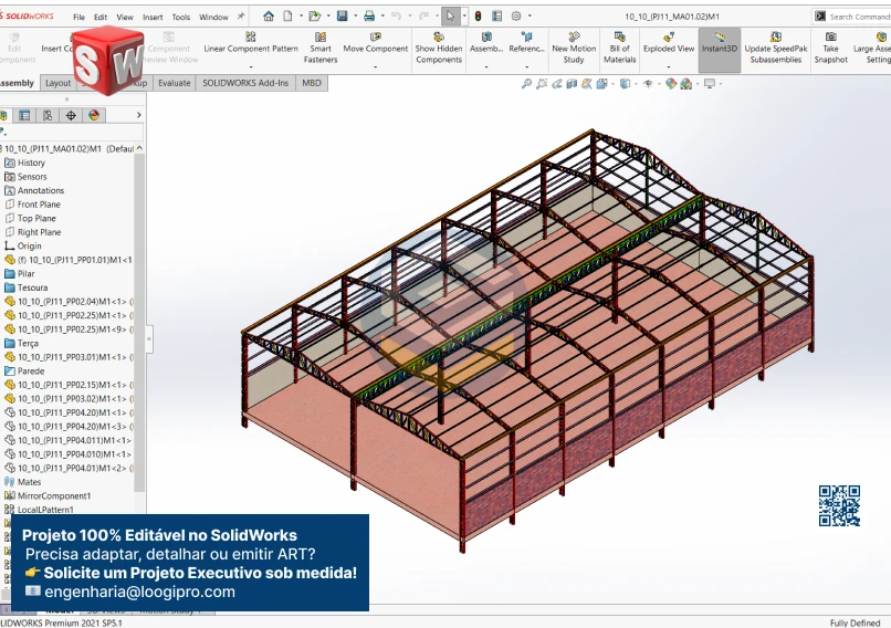 A Loogipro oferece serviço de consultoria técnica para desenvolvimento completo do projeto, incluindo cálculos, memoriais, lista de materiais, folhas de detalhamento e ART. Entre em contato para transformar seu Assembly em um projeto executivo pronto para aprovação.