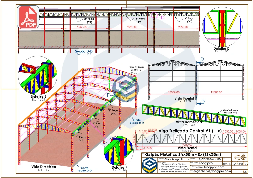 ⚠️ Observação: Este projeto de referência em PDF não inclui cálculo estrutural, fundações ou validação técnica (conforme NBR 8800 e NBR 14762). O uso é de responsabilidade do engenheiro responsável, seguindo as normas técnicas vigentes.