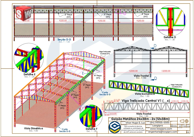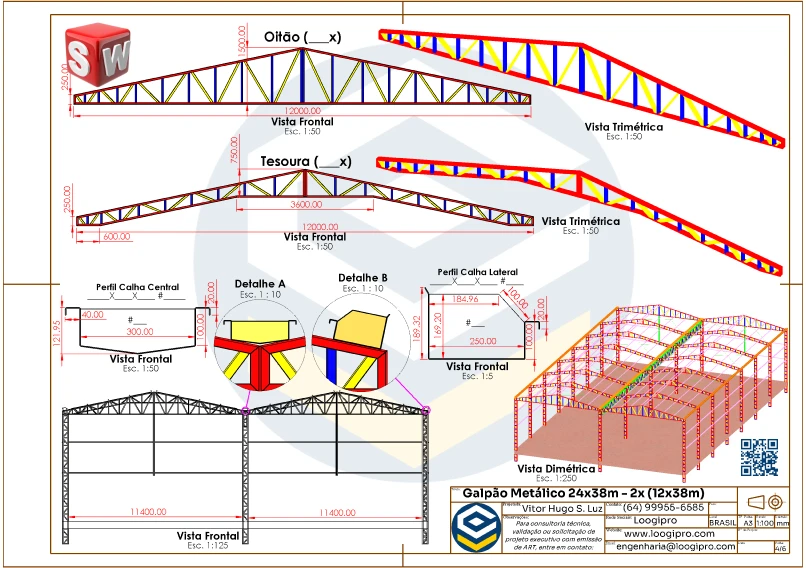 ⚠️ Observação: Este produto não inclui cálculo estrutural, fundações ou validação técnica. O uso é de responsabilidade do engenheiro aplicador, conforme as normas técnicas vigentes (como NBR 8800 e NBR 14762).