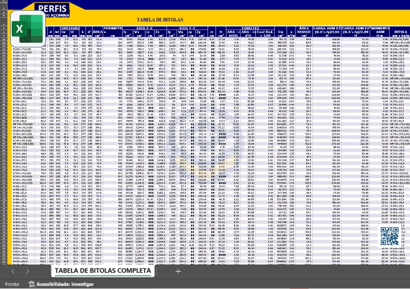 📦Modelo | Planilha de Bitolas Gerdau – Tabela de Perfis Laminados em Excel |