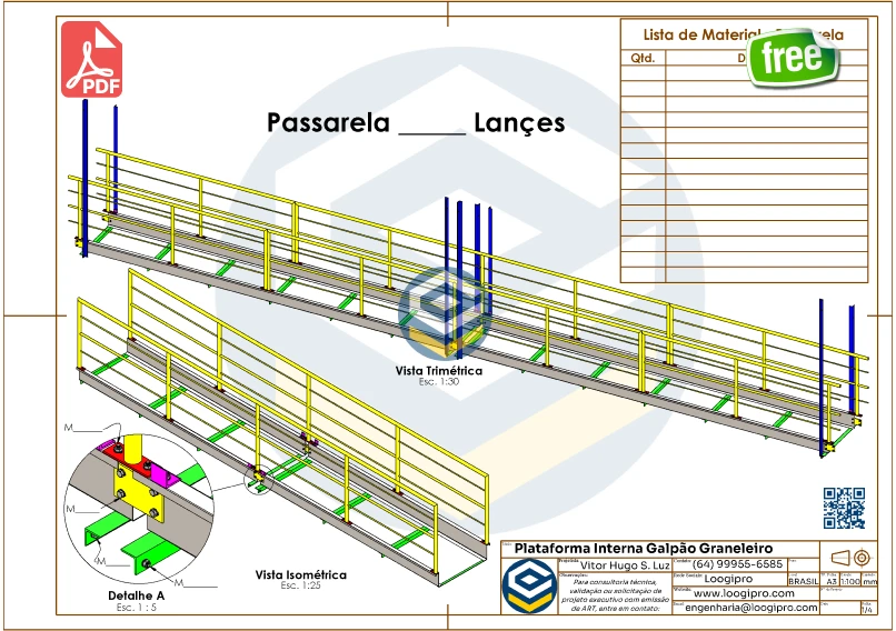 Os projetos em PDF gratuitos foram desenvolvidos para agilizar a vida dos profissionais da construção civil e das estruturas metálicas. Eles oferecem uma referência visual rápida, com dimensões gerais, permitindo avaliar o modelo de forma prática antes de optar por um projeto completo e editável.