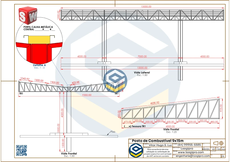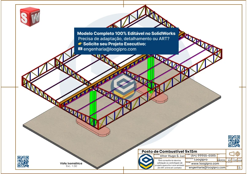 O projeto Posto de Combustível 9x15m é totalmente editável, garantindo liberdade total para ajustes de medidas, conexões e detalhes estruturais. Facilite adequações conforme as demandas de cada cliente ou obra e ganhe eficiência em todas as etapas do seu desenvolvimento.