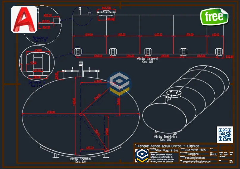 ✨ Características do Tanque Aéreo 12000 Litros – Elíptico – DWG